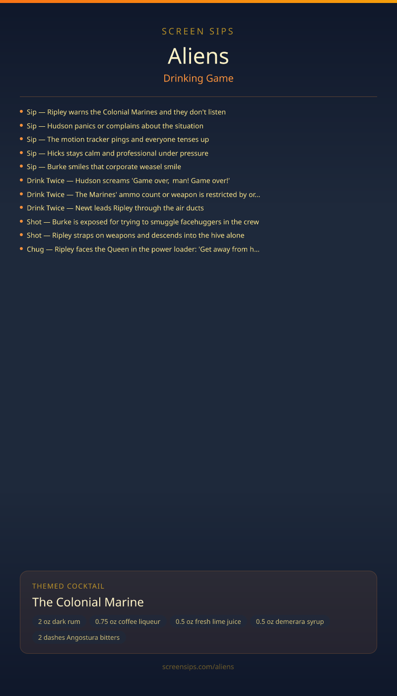 - Drink Twice — Hudson screams 'Game over, man! Game over!'