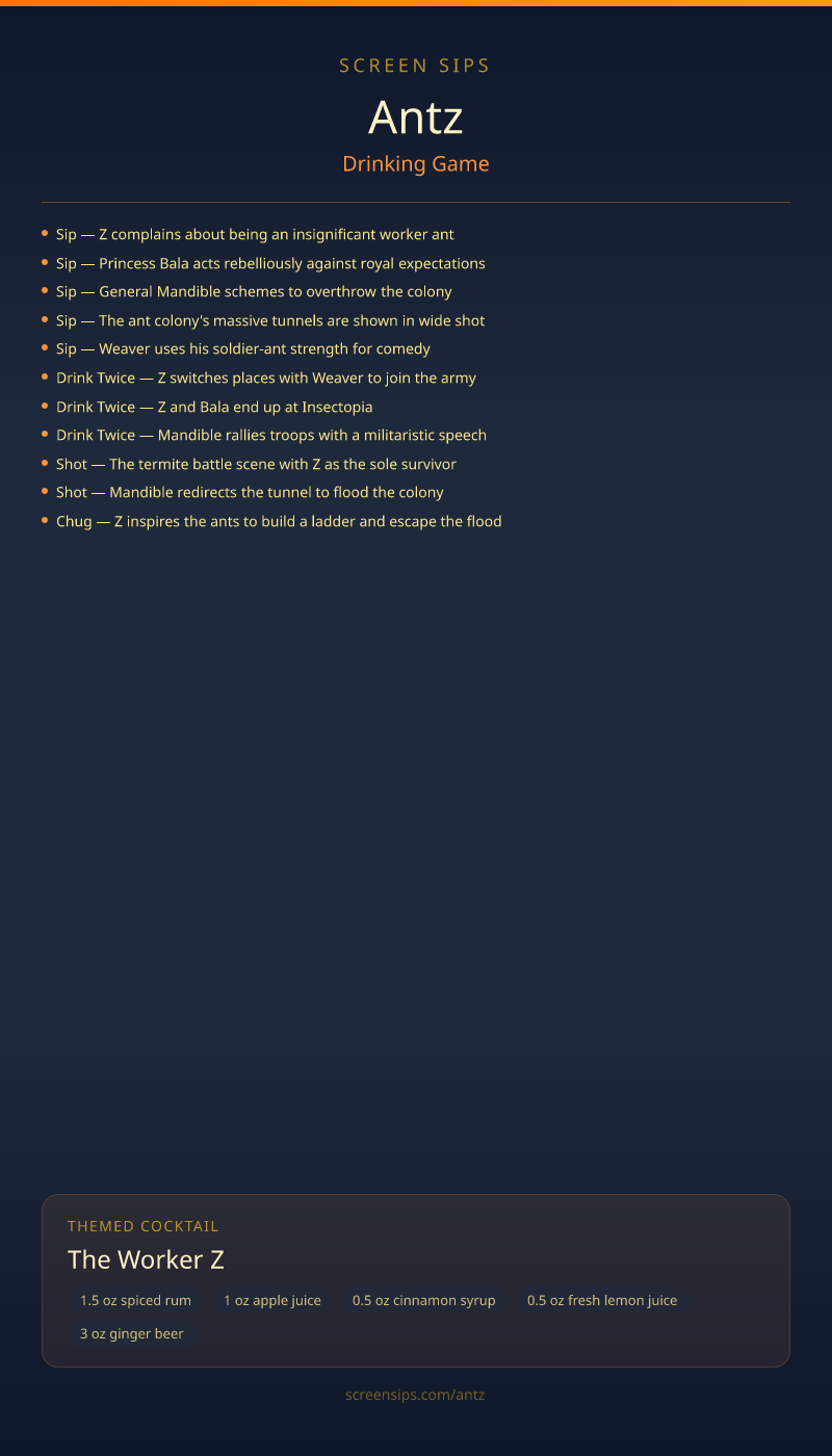 - Chug — Z inspires the ants to build a ladder and escape the flood