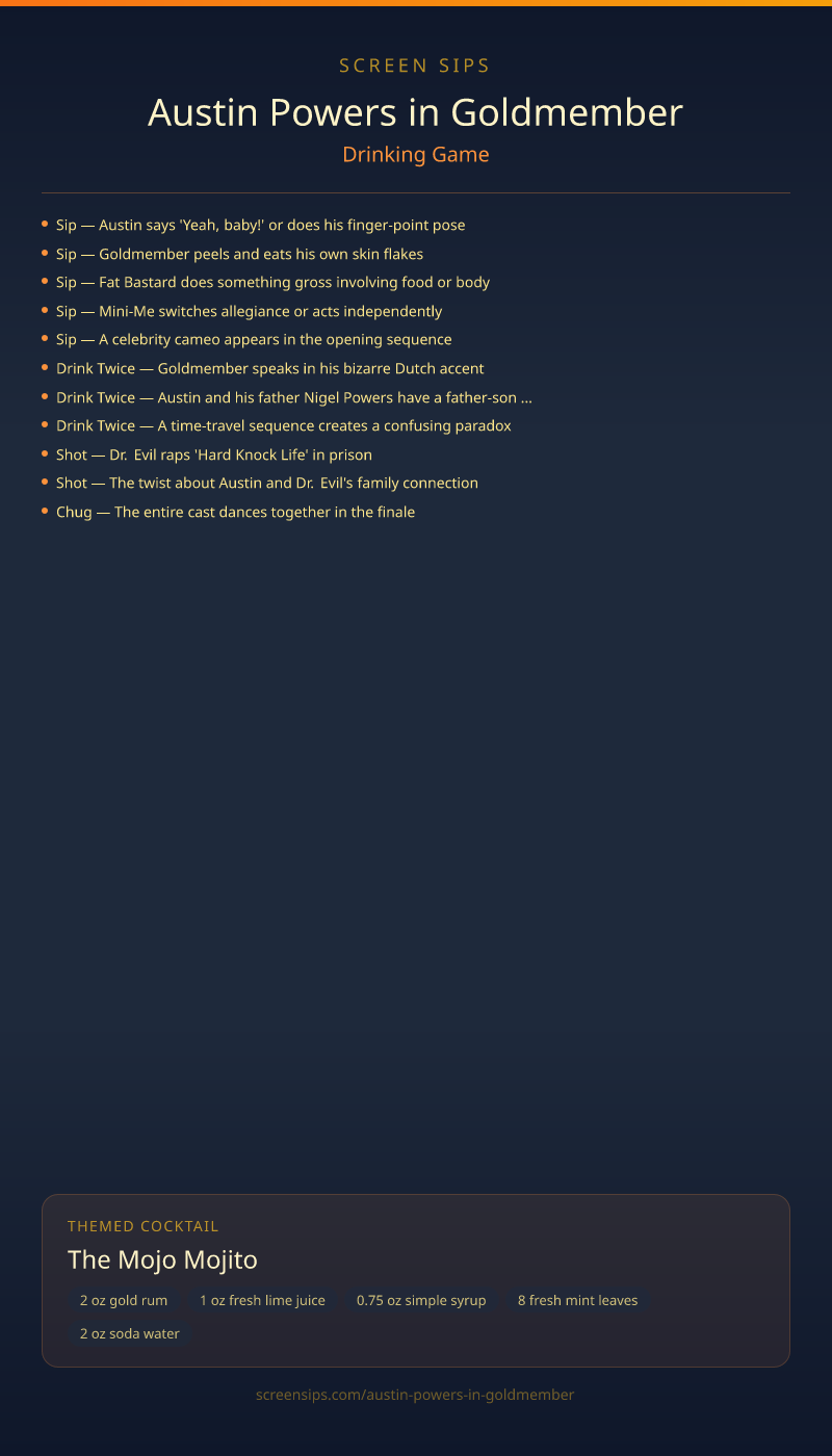 Austin Powers in Goldmember Drinking Game + Cocktail