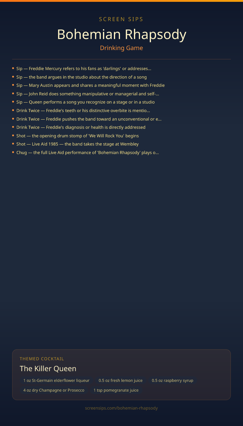 - Chug — the full Live Aid performance of 'Bohemian Rhapsody' plays on screen