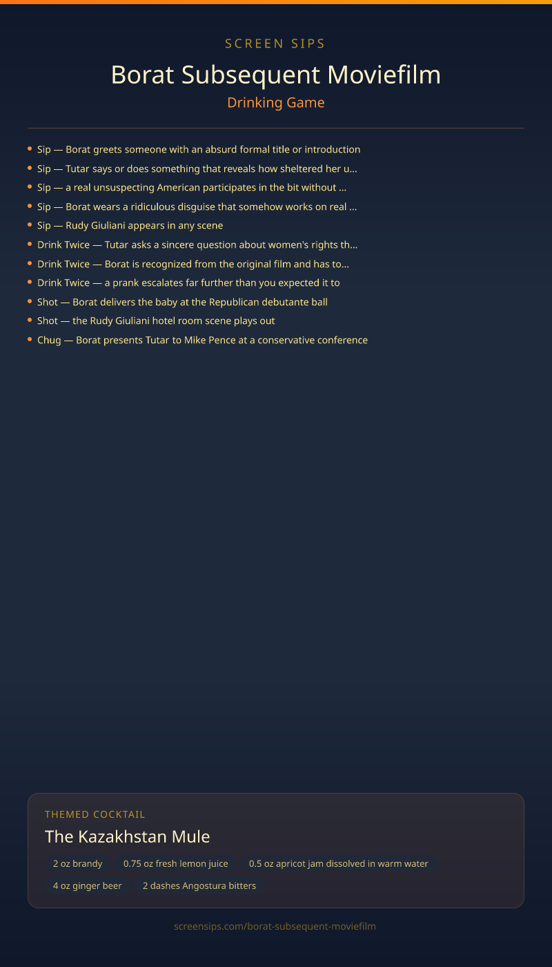 Borat Subsequent Moviefilm Drinking Game + Cocktail