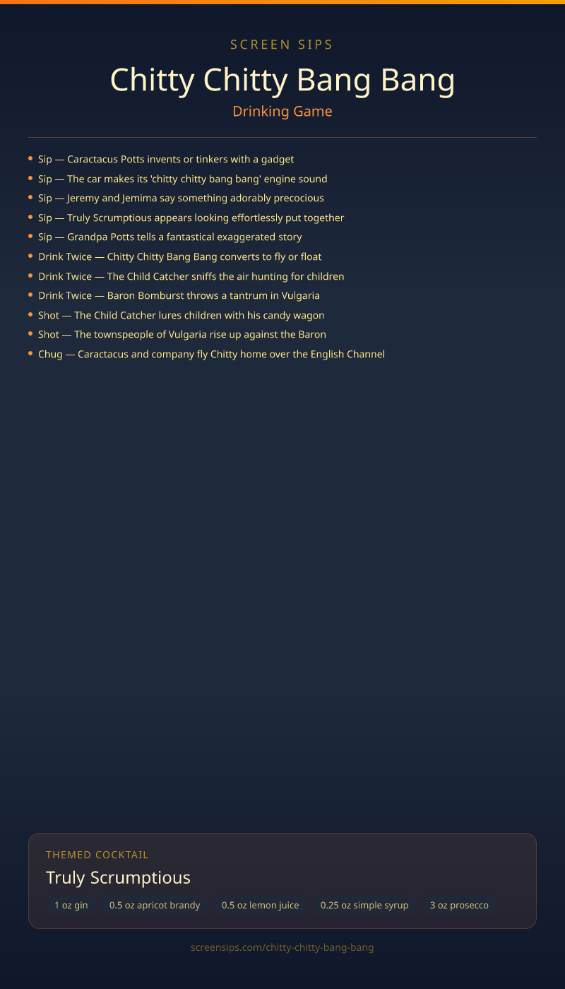Chitty Chitty Bang Bang Drinking Game + Cocktail
