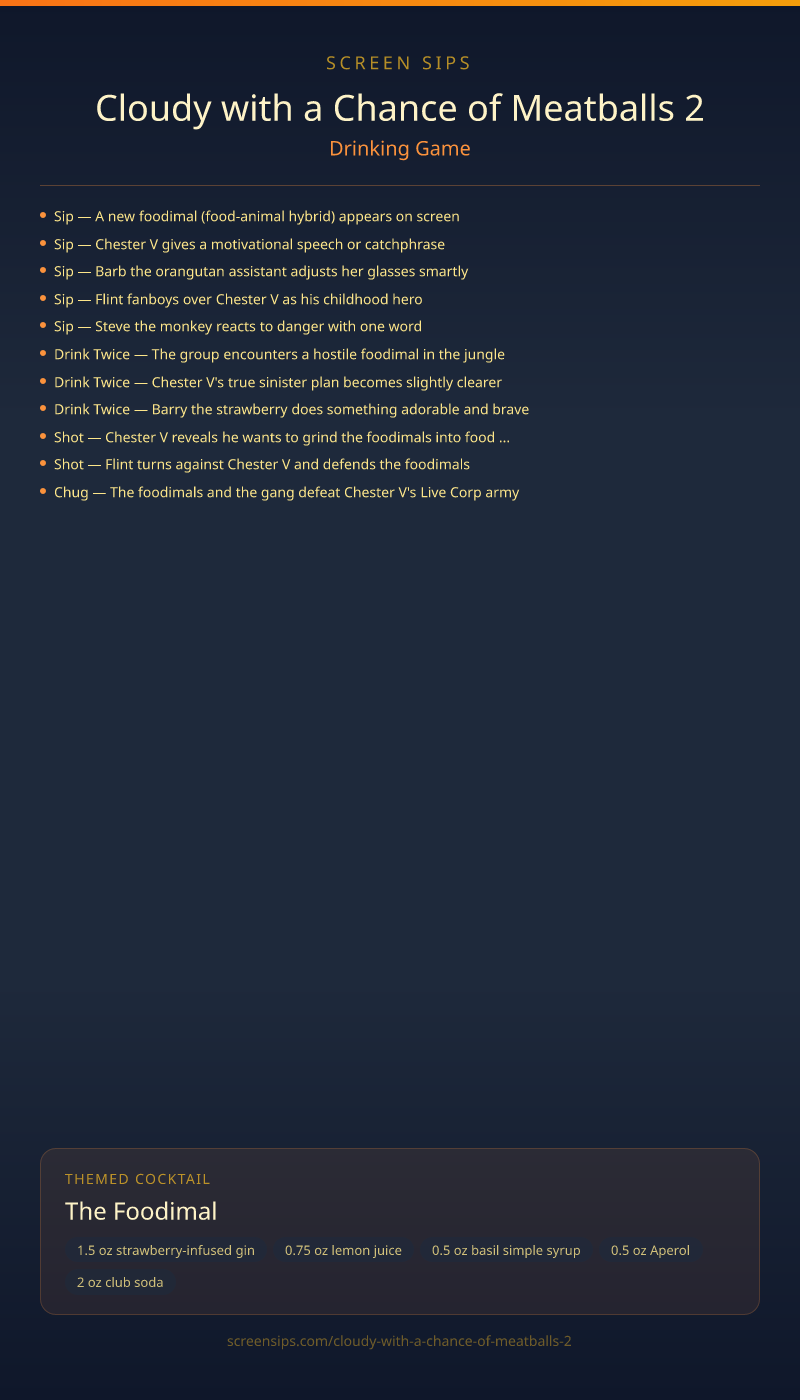 Cloudy with a Chance of Meatballs 2 Drinking Game + Cocktail