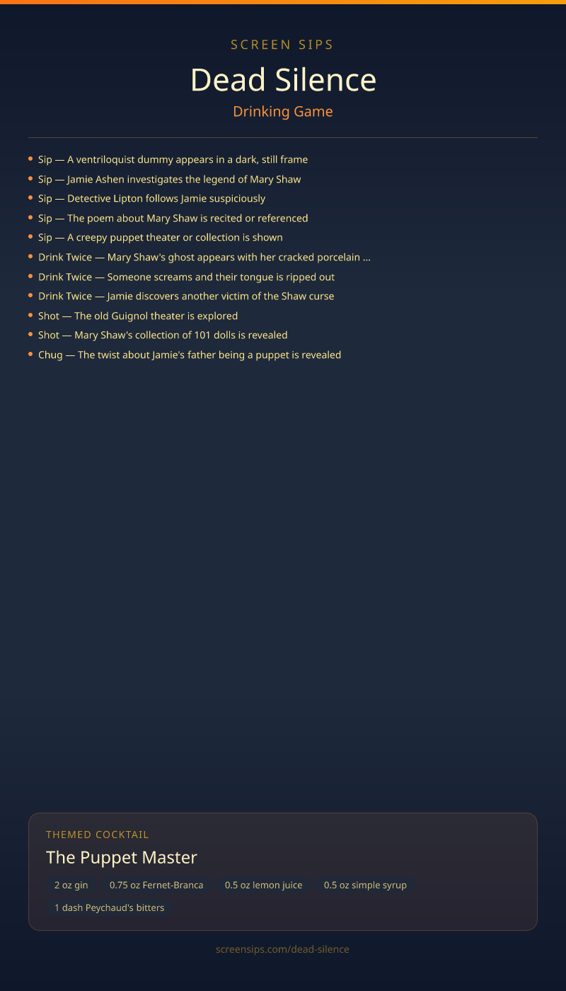 - Drink Twice — Mary Shaw's ghost appears with her cracked porcelain face