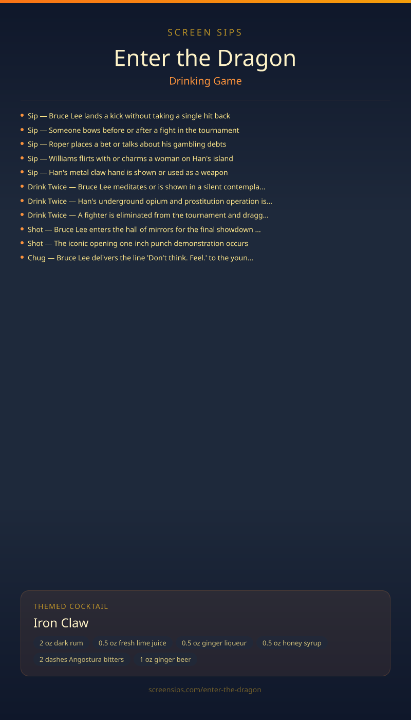 Bruce Lee's fists are flying — keep your glass full and your guard down.