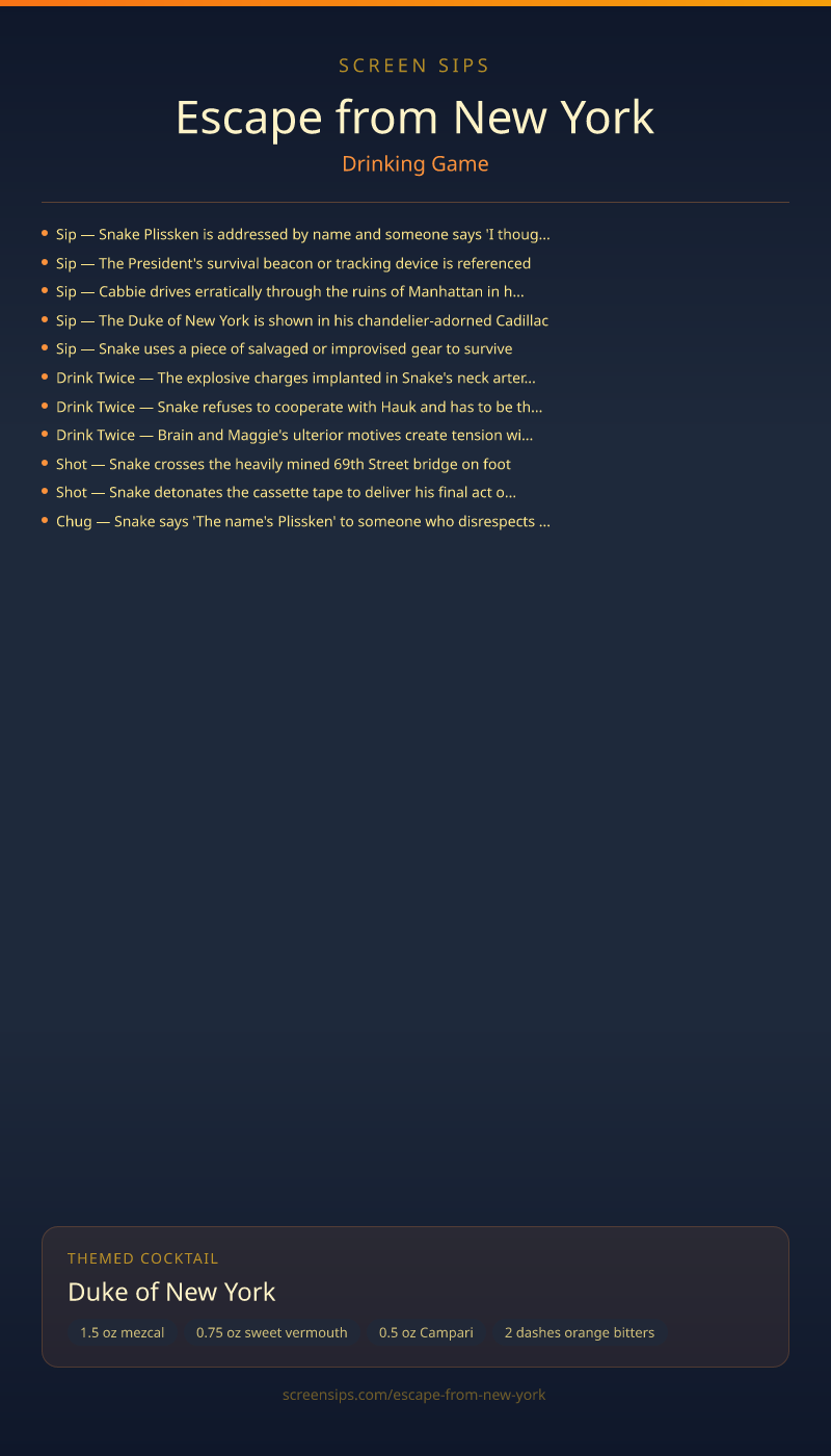 Escape from New York Drinking Game + Cocktail