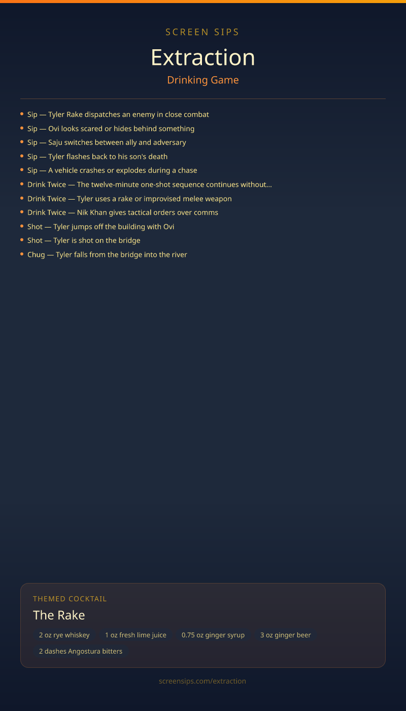 - Sip — Tyler Rake dispatches an enemy in close combat