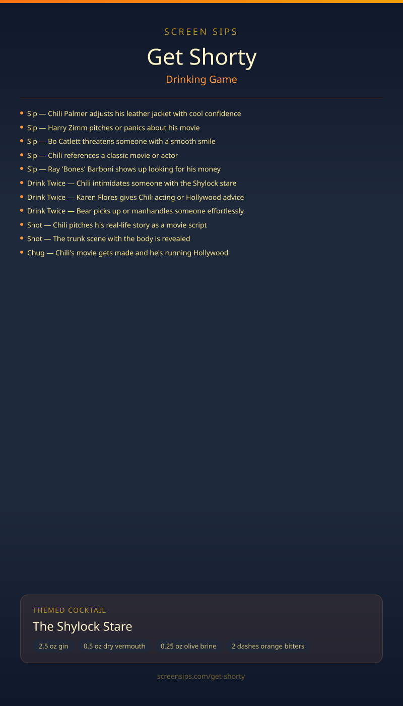 - Sip — Chili Palmer adjusts his leather jacket with cool confidence