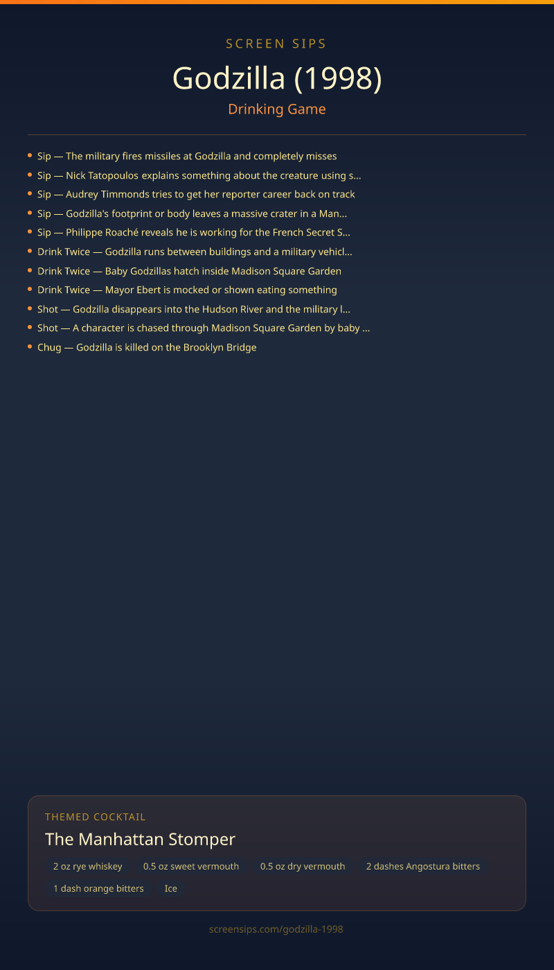 Godzilla (1998) Drinking Game + Cocktail