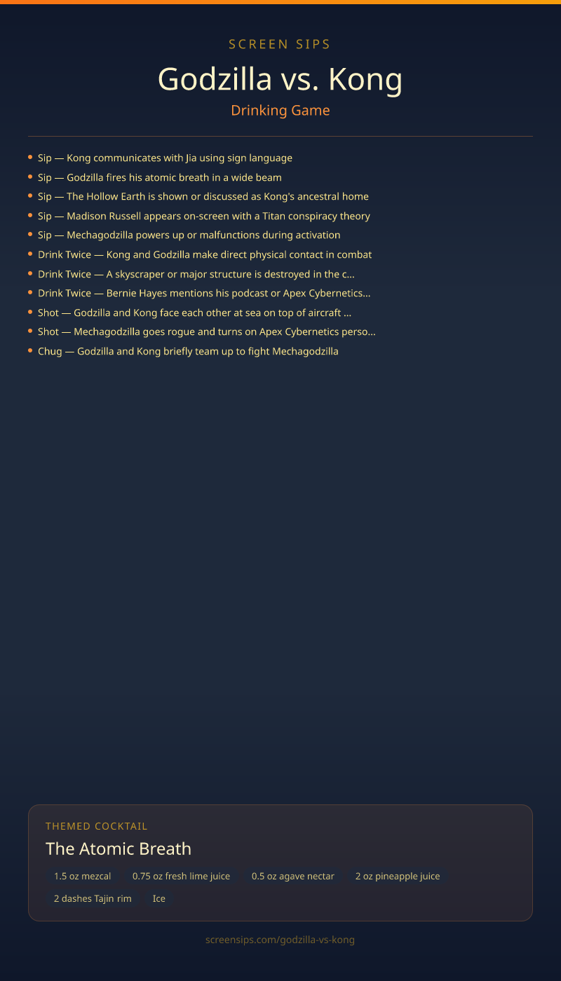 - Drink Twice — Kong and Godzilla make direct physical contact in combat