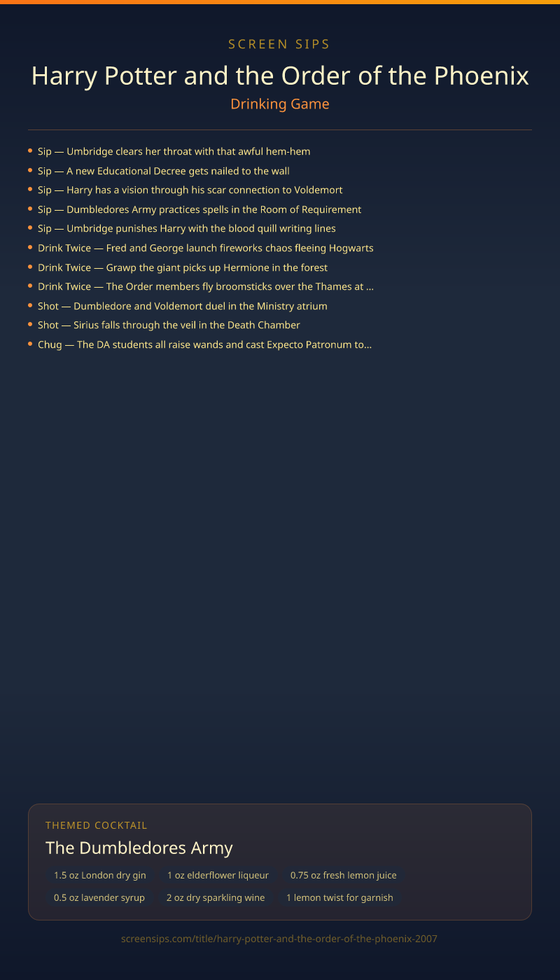 Harry Potter and the Order of the Phoenix Drinking Game + Cocktail
