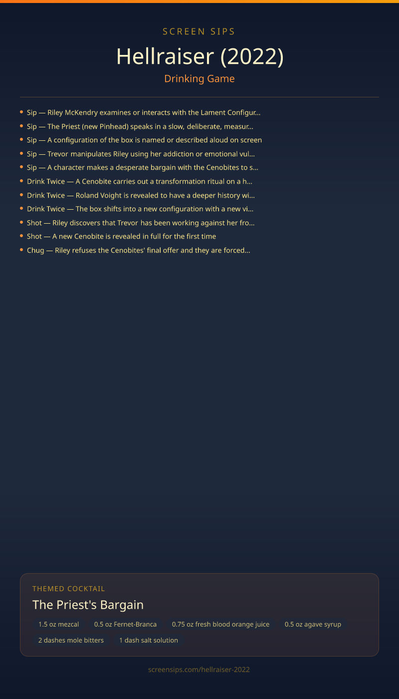 - Sip — The Priest (new Pinhead) speaks in a slow, deliberate, measured cadence