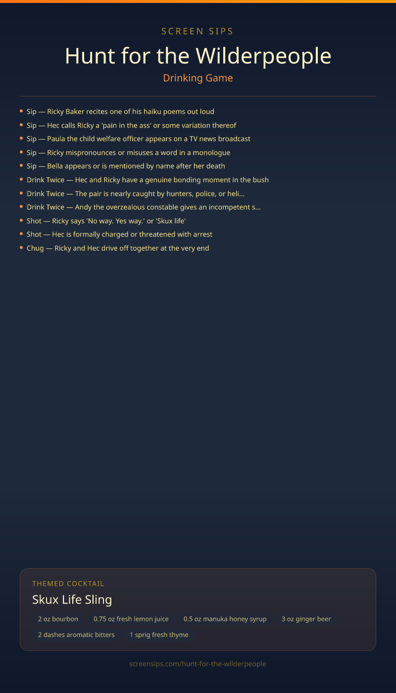 Hunt for the Wilderpeople Drinking Game + Cocktail