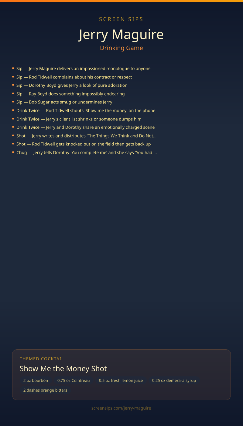 - Drink Twice — Rod Tidwell shouts 'Show me the money' on the phone