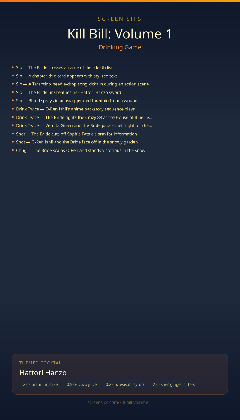 Kill Bill: Volume 1 Drinking Game + Cocktail