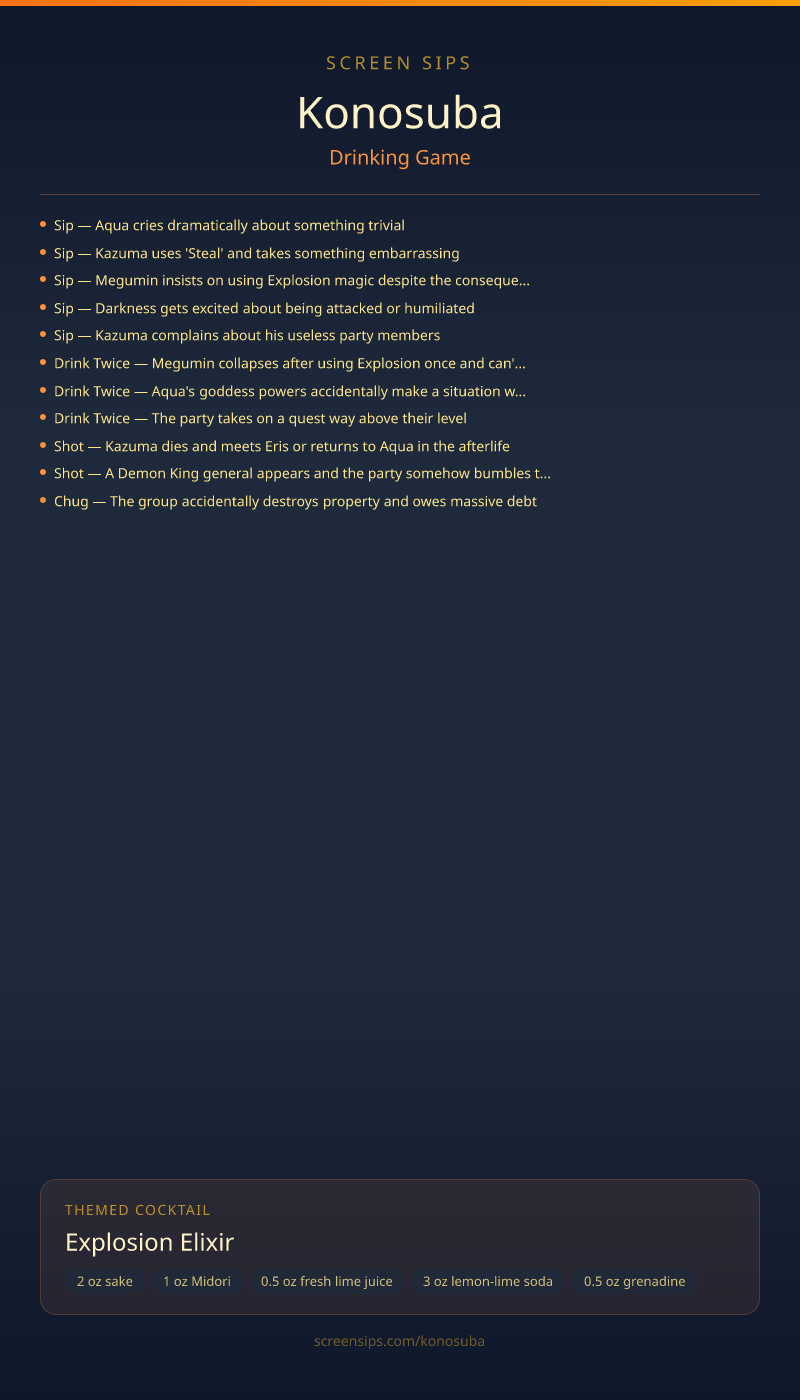 - Sip — Megumin insists on using Explosion magic despite the consequences