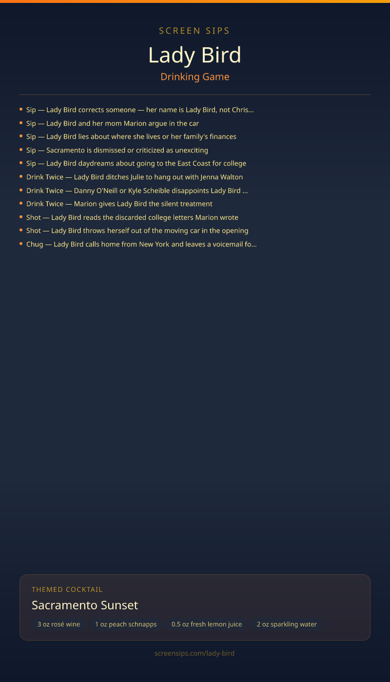 Lady Bird Drinking Game + Cocktail