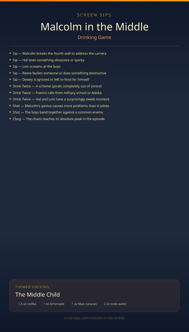 - Sip — Malcolm breaks the fourth wall to address the camera
