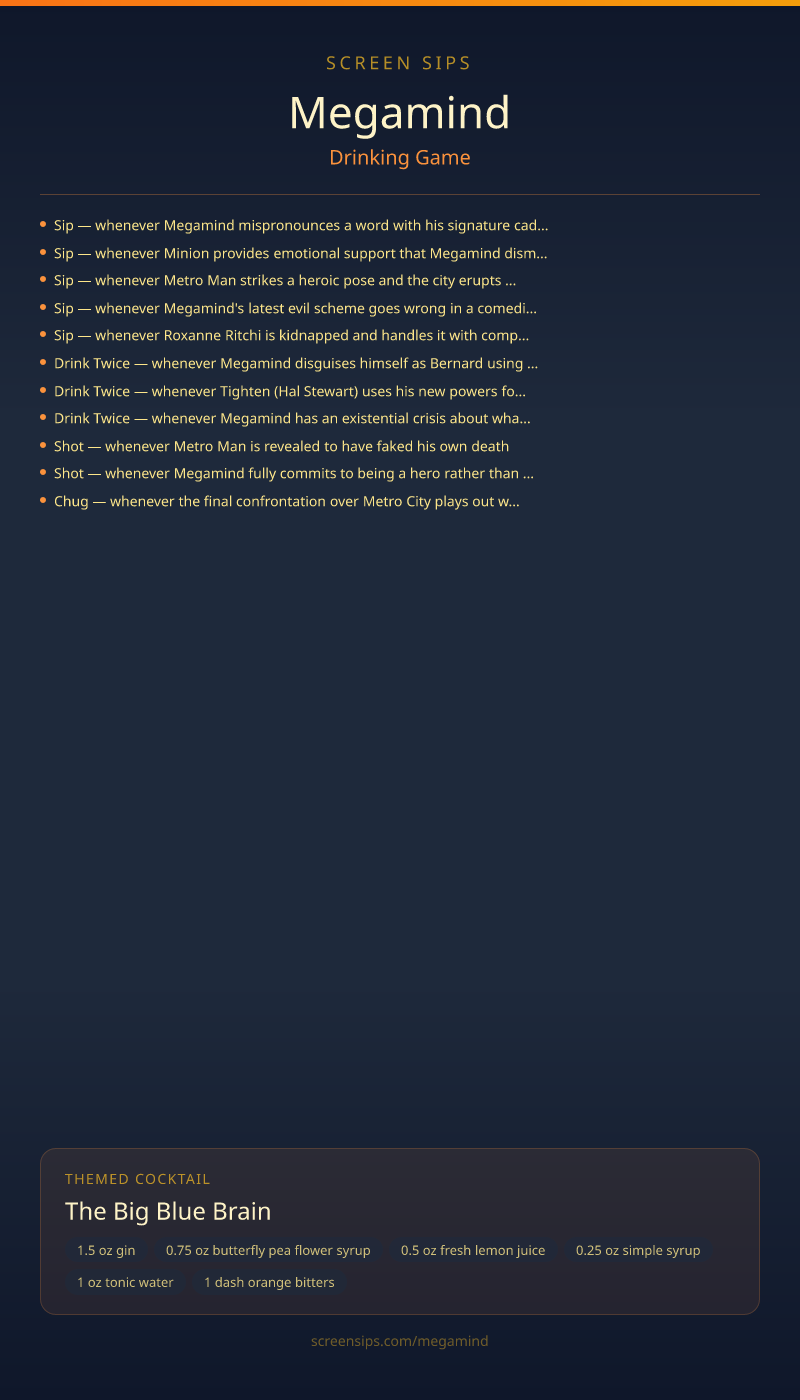 - Drink Twice — whenever Megamind has an existential crisis about what villains do without heroes