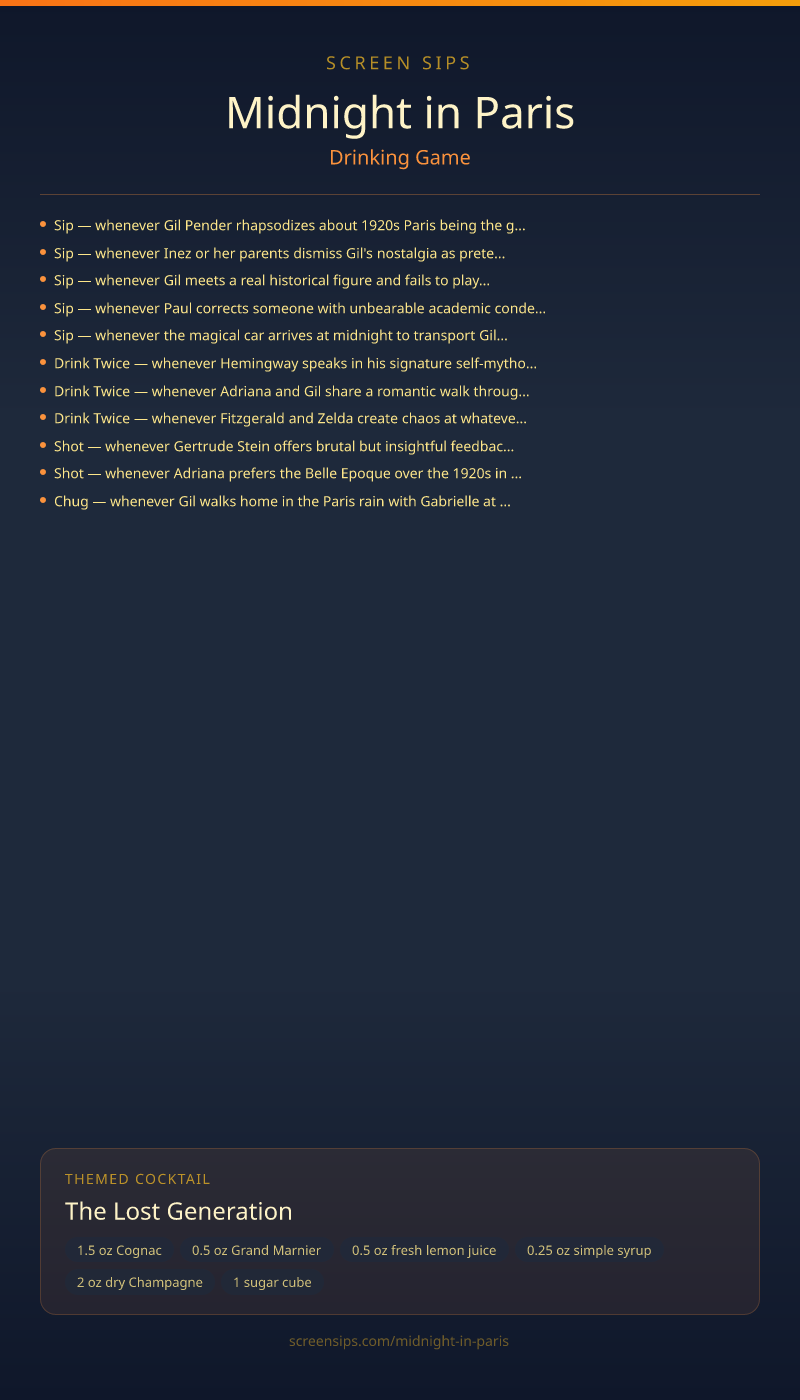 Midnight in Paris Drinking Game + Cocktail