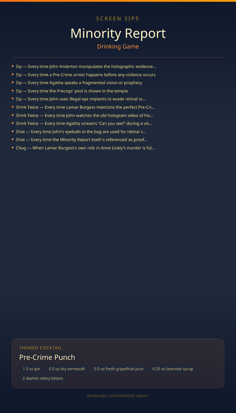 - Drink Twice — Every time Lamar Burgess mentions the perfect Pre-Crime record