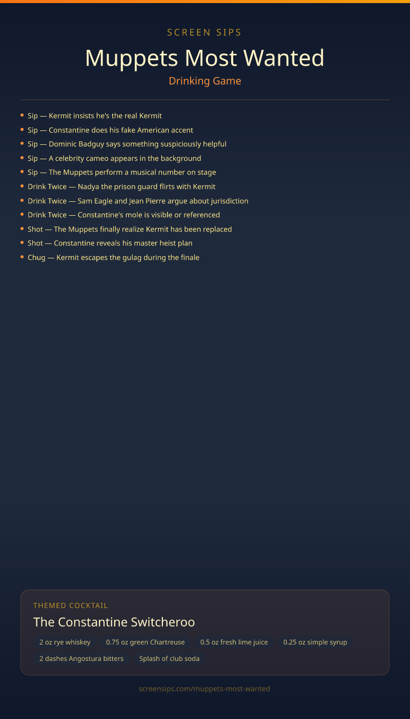 - Drink Twice — Nadya the prison guard flirts with Kermit