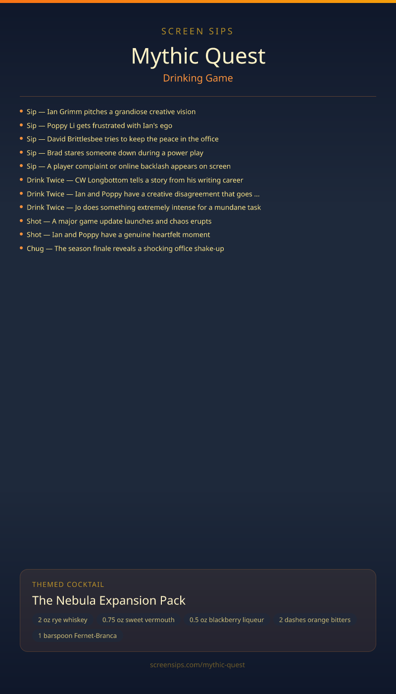 Mythic Quest Drinking Game + Cocktail