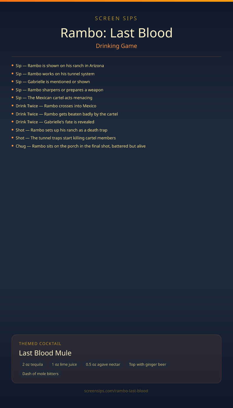 - Drink Twice — Rambo gets beaten badly by the cartel