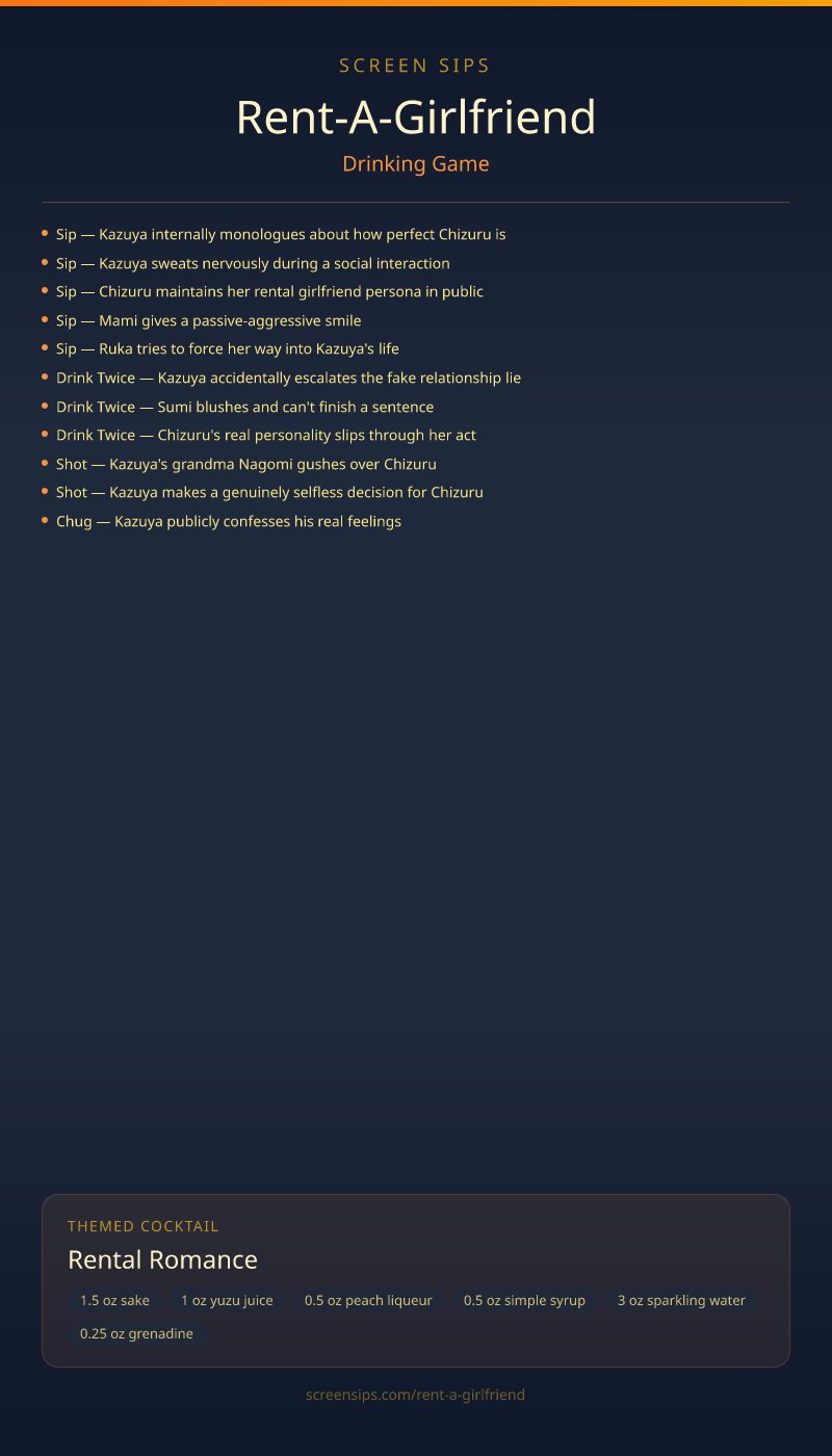 Rent-A-Girlfriend Drinking Game + Cocktail