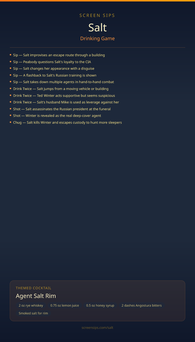 - Drink Twice — Salt's husband Mike is used as leverage against her