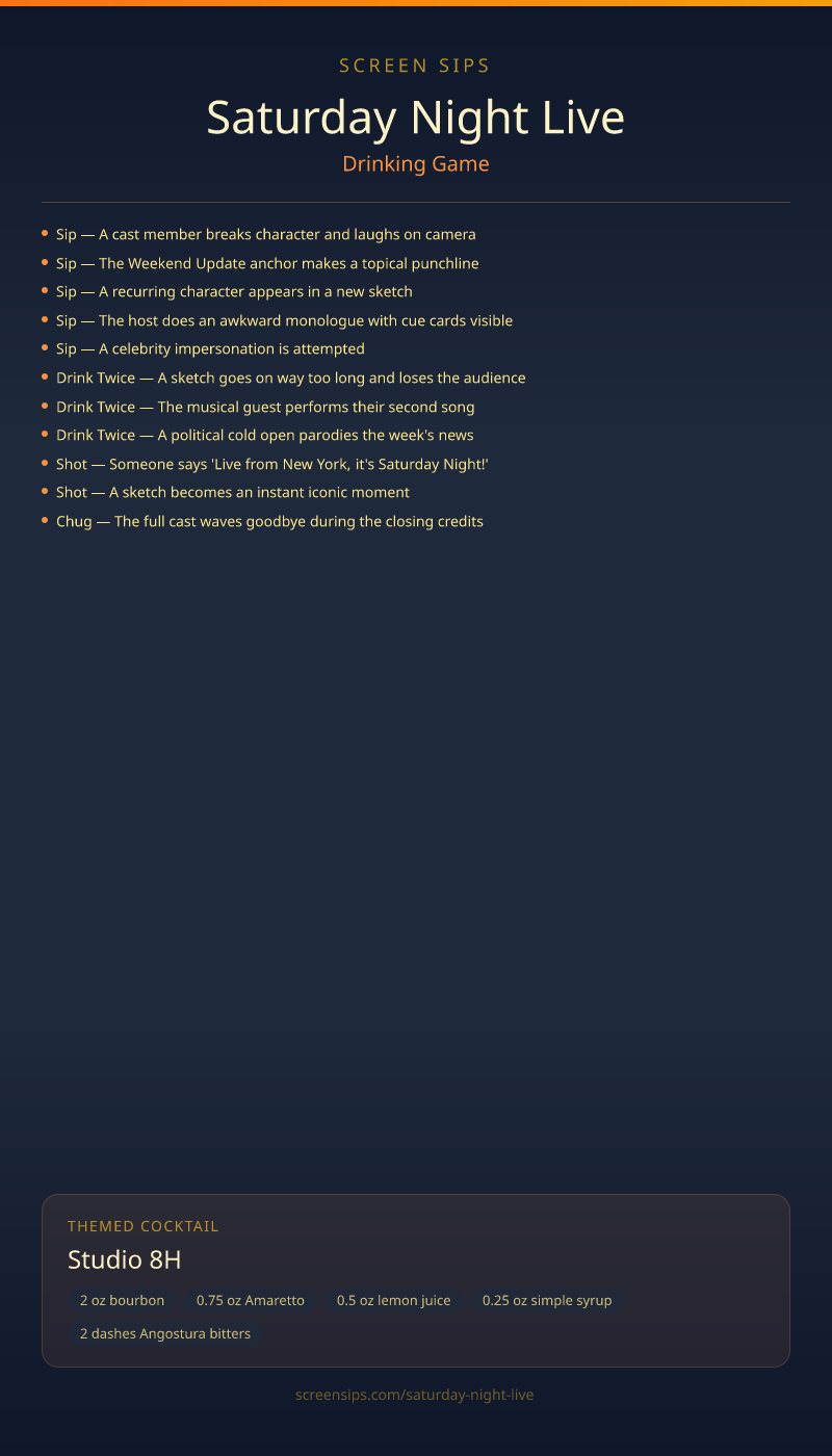 Live from New York — sip every time the sketch derails.