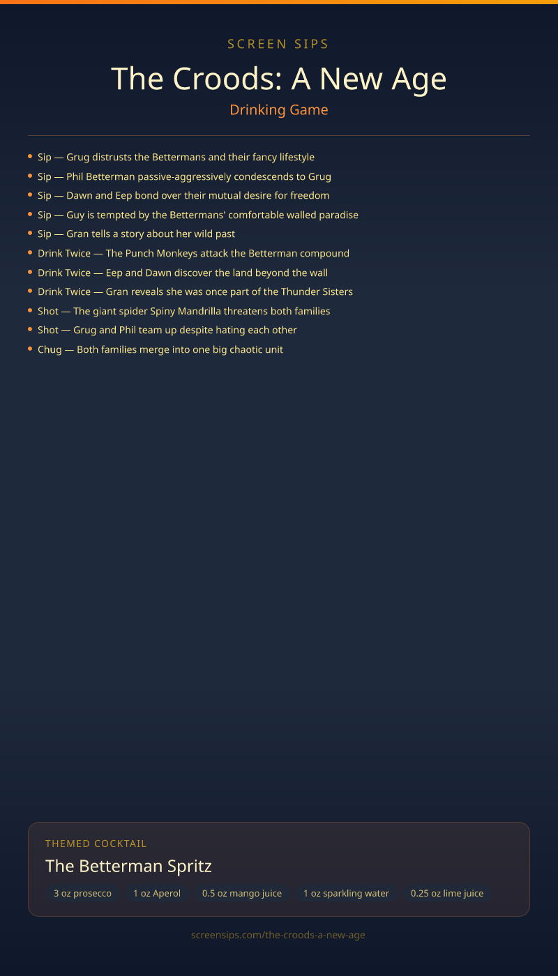 Two families clash — double the Croods, double the drinks.