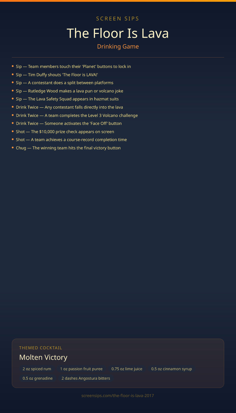 - Drink Twice — A team completes the Level 3 Volcano challenge