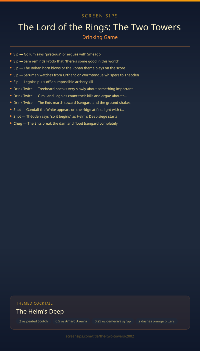 The Lord of the Rings: The Two Towers Drinking Game + Cocktail