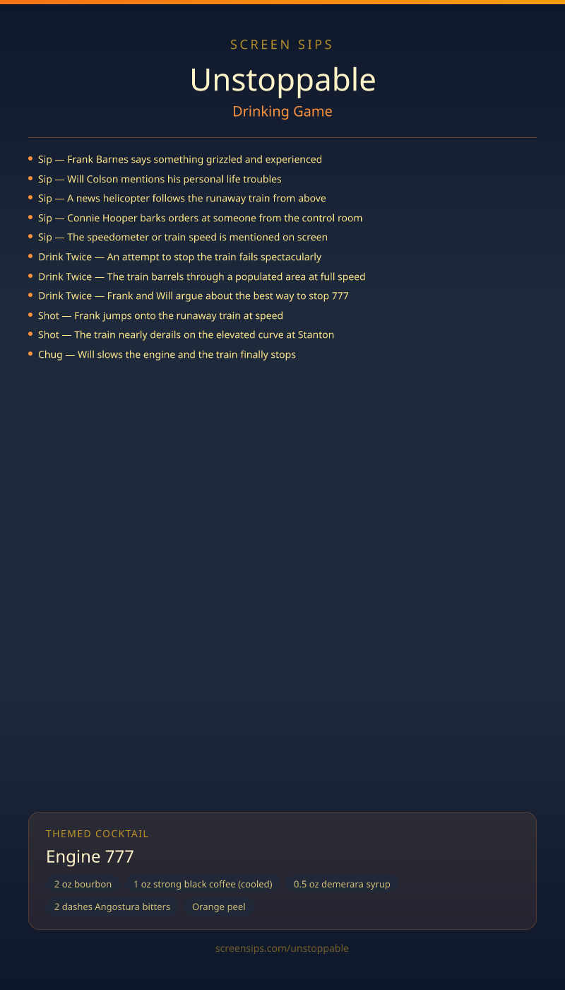 Denzel Washington chases a runaway train — your heart rate and drink count both climb.
